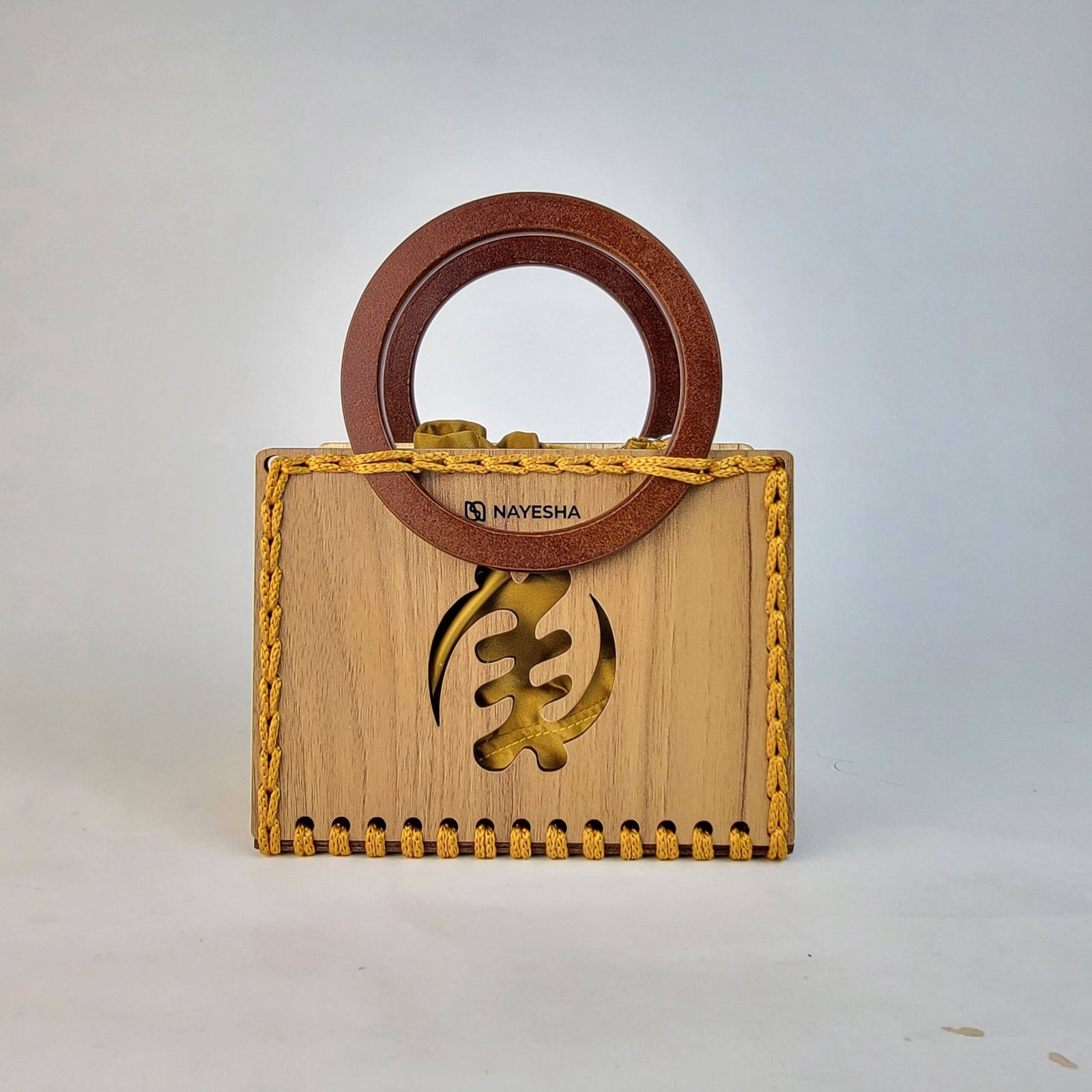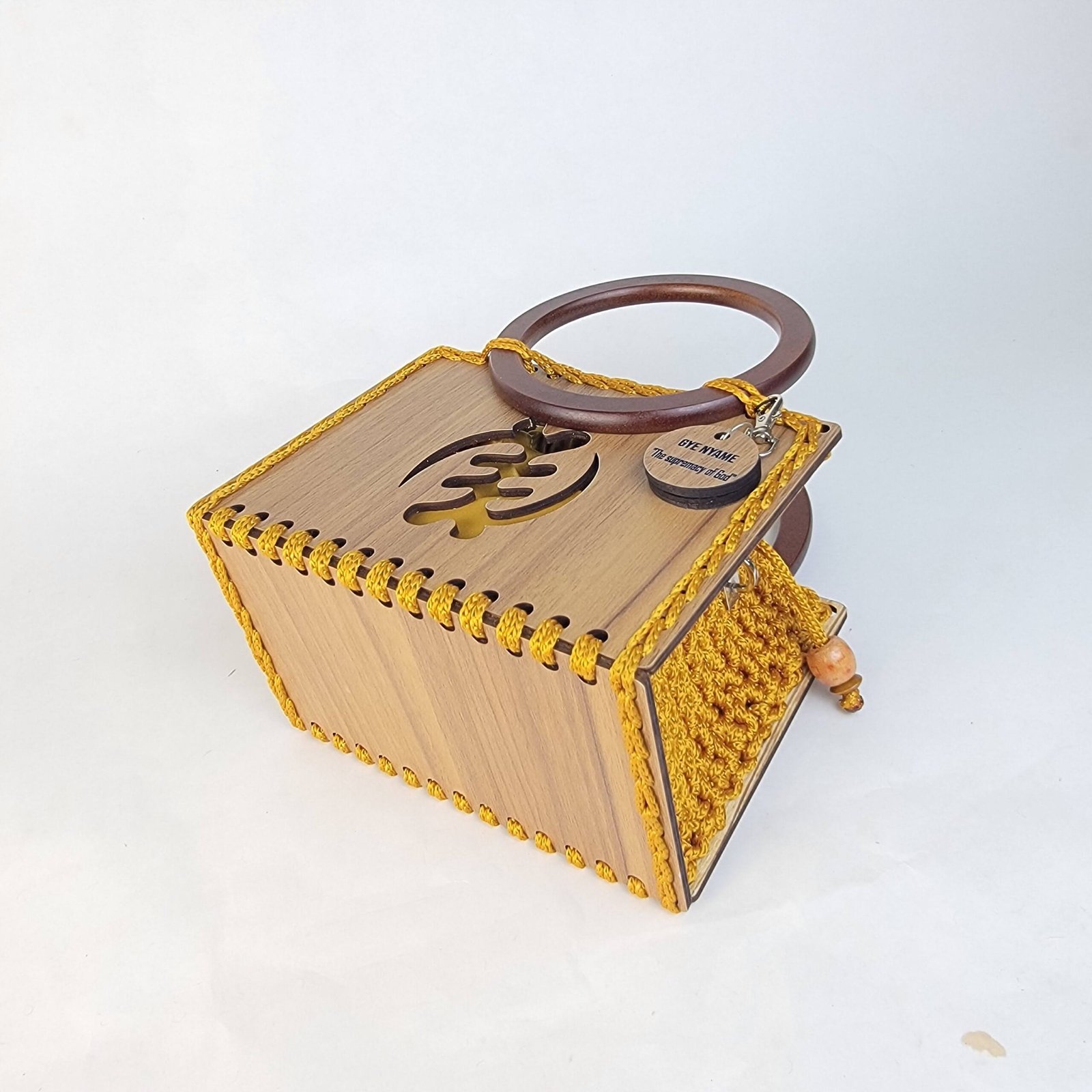 Daafua small-wood carved plate crochet handbag