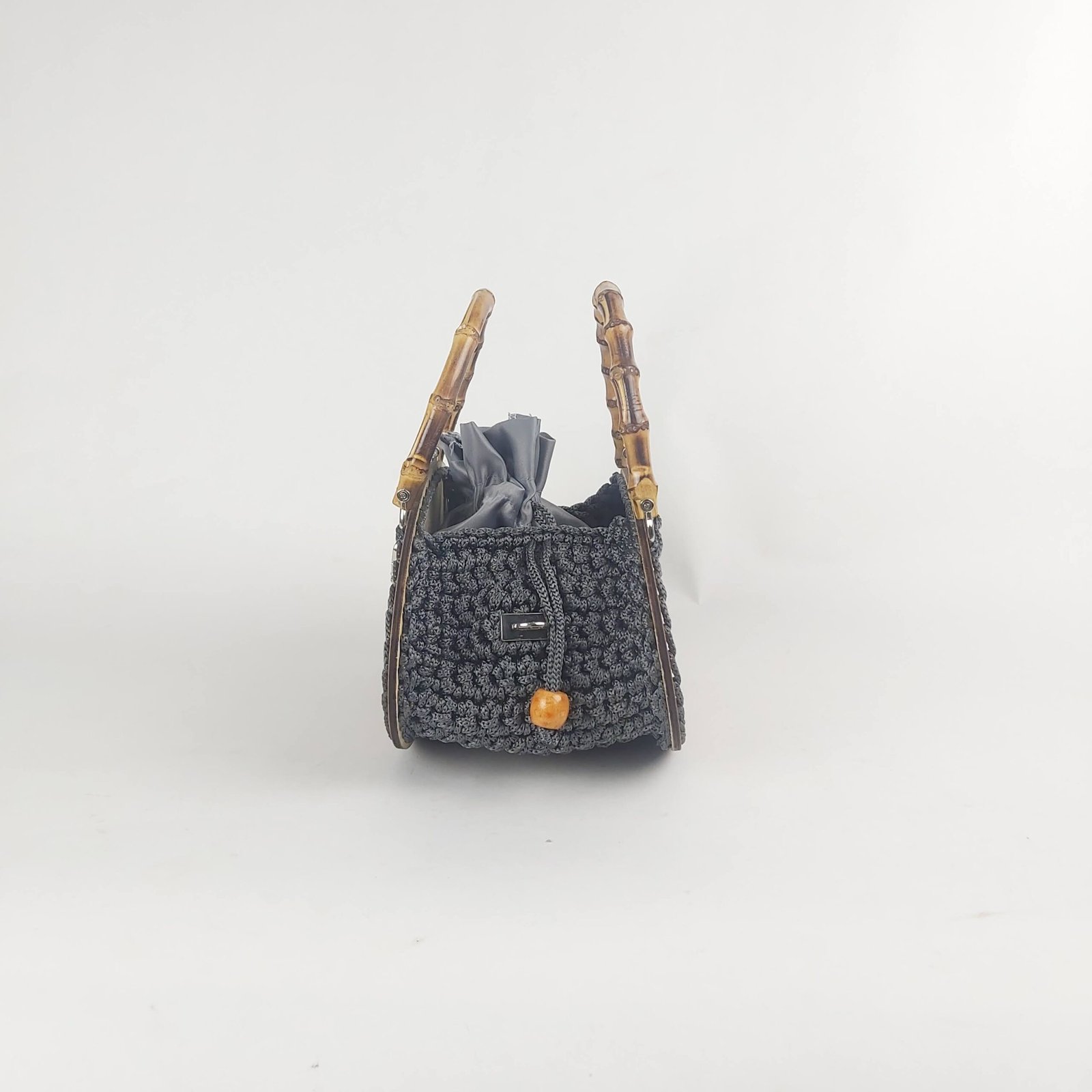 Tags: Crochet handbag curved wooden plate intertwined crochet and golden strap