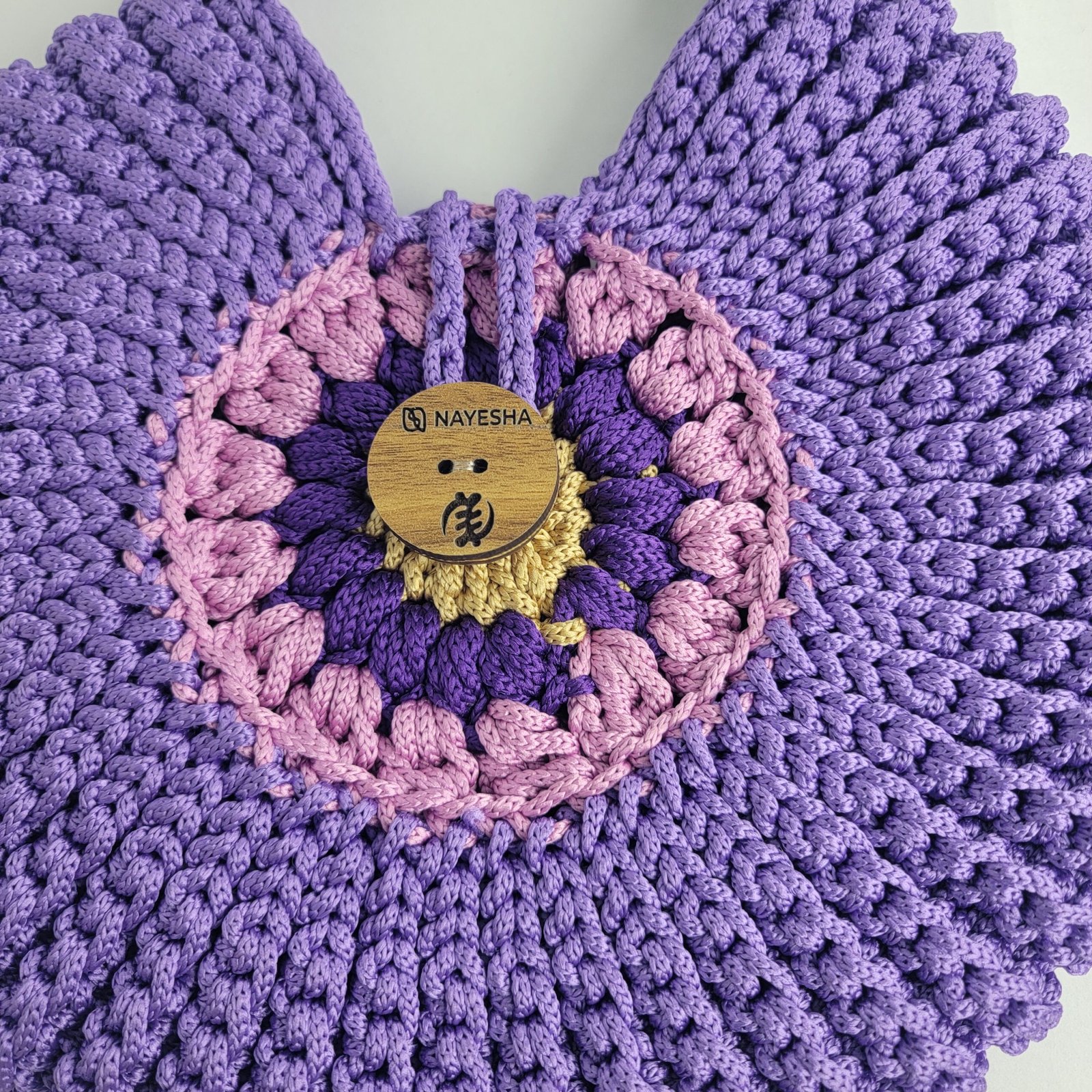 Daafua large-wood carved plate crochet handbag