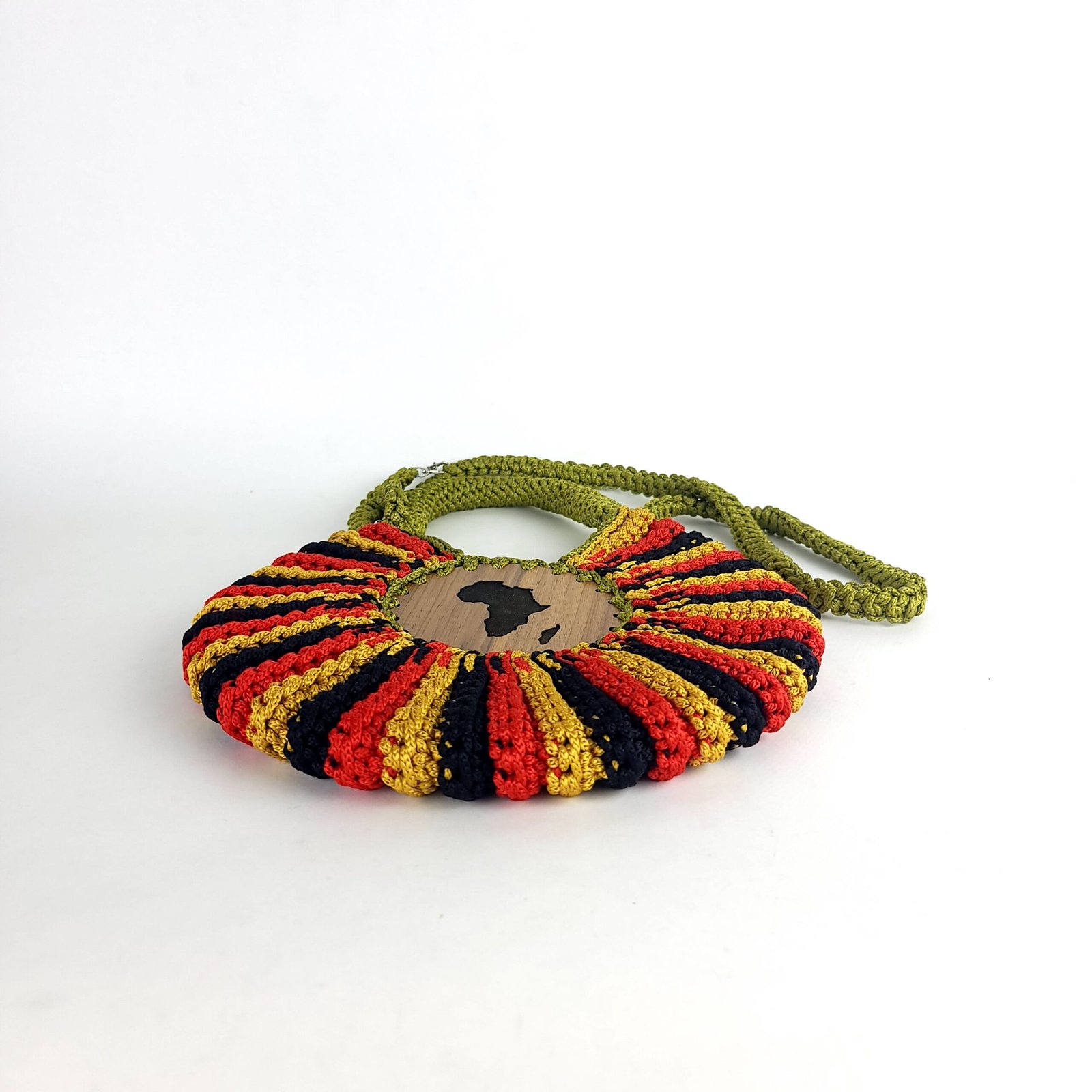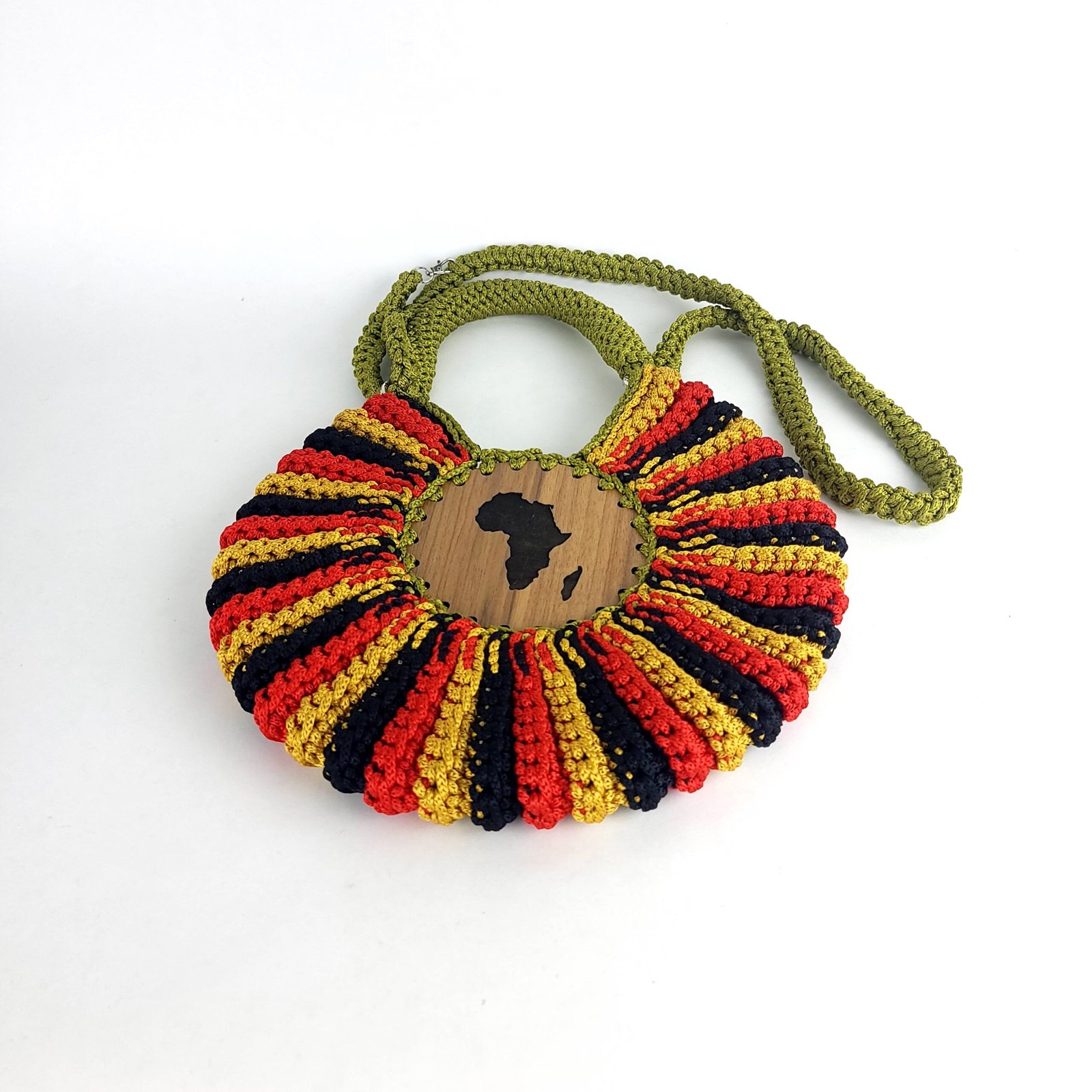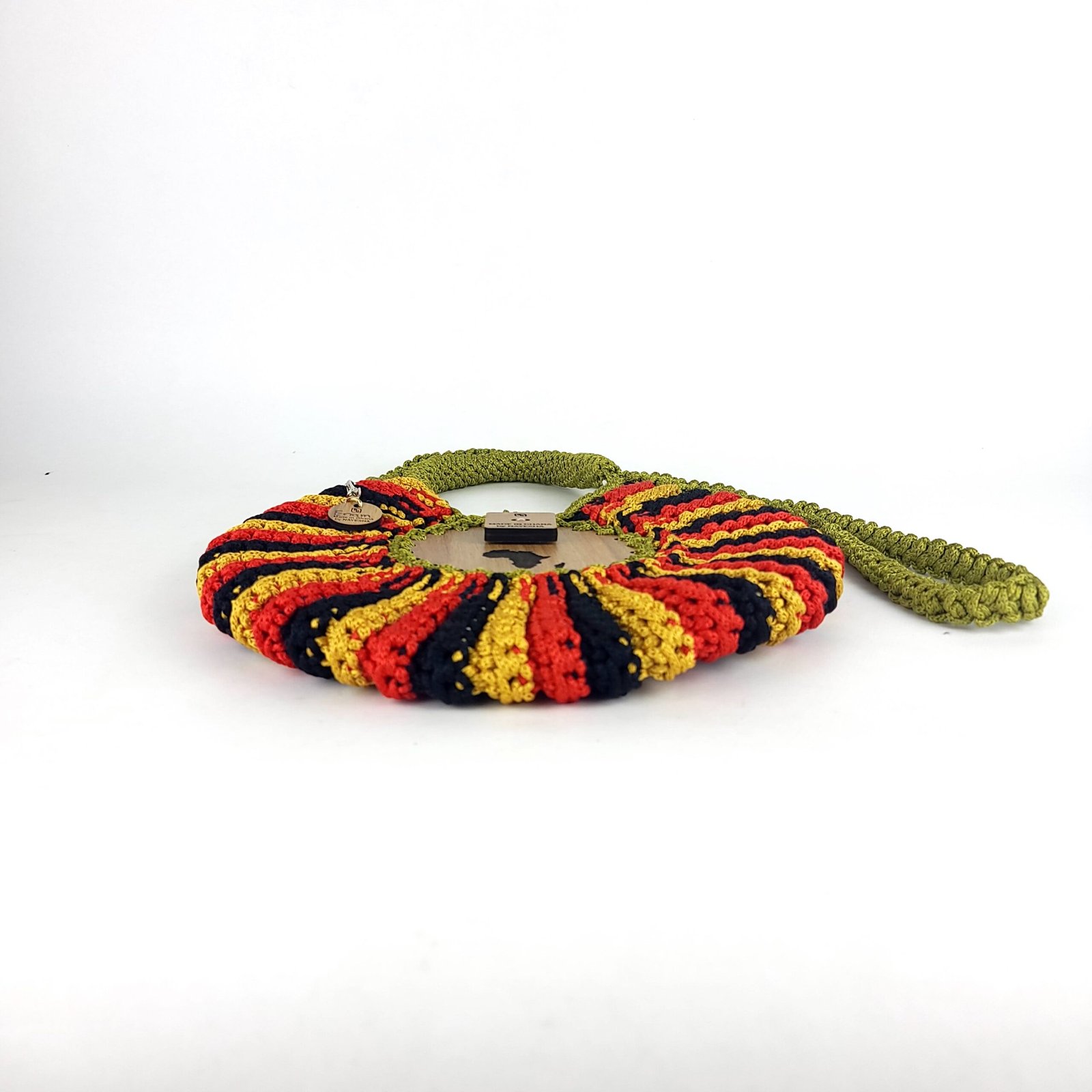 Our Enam Handbag is an ode to a seashell. It’s round and made fully of crochet. It is soft but stands tall like the pride of the sea it is made after and has a long detachable crochet handle. The enam bag is;