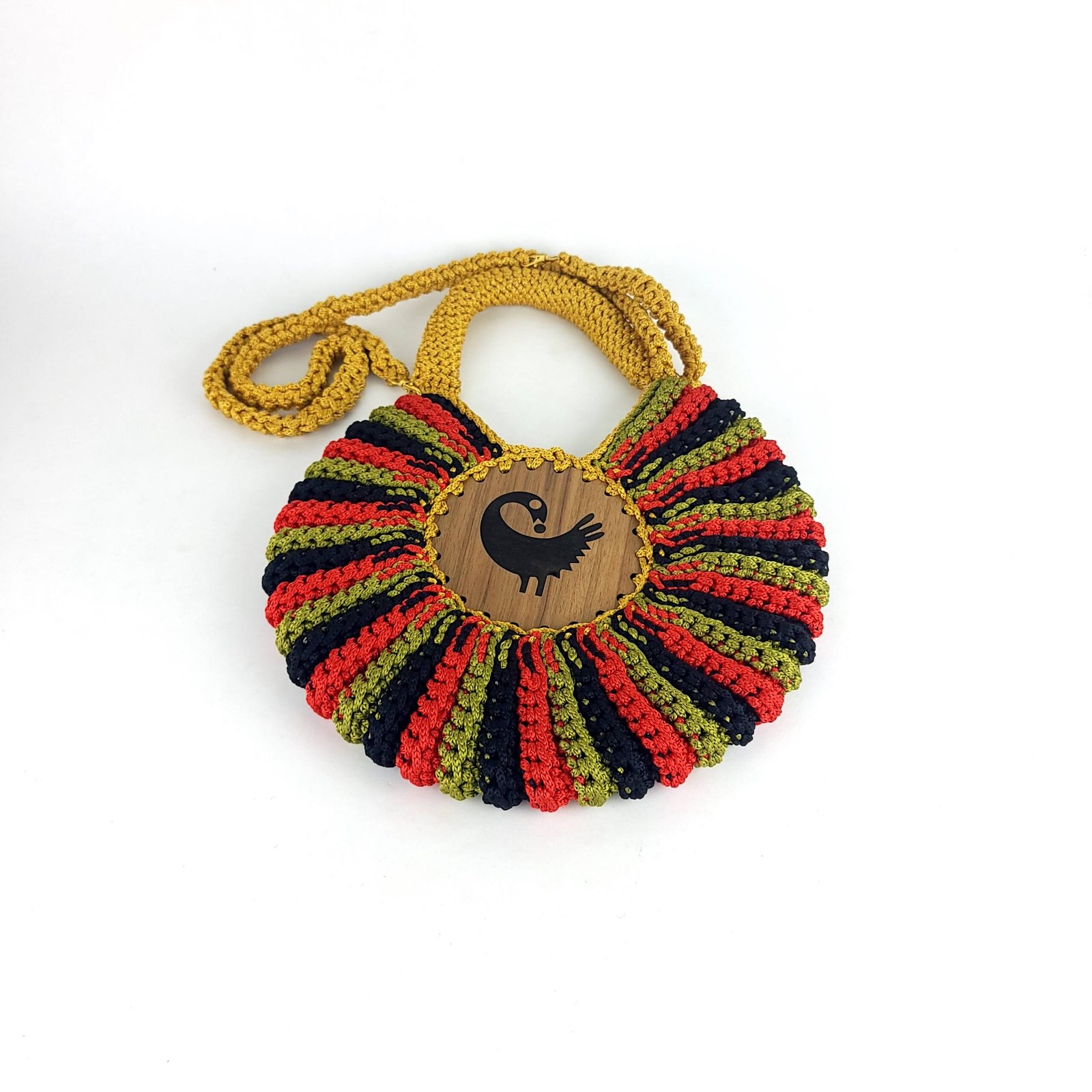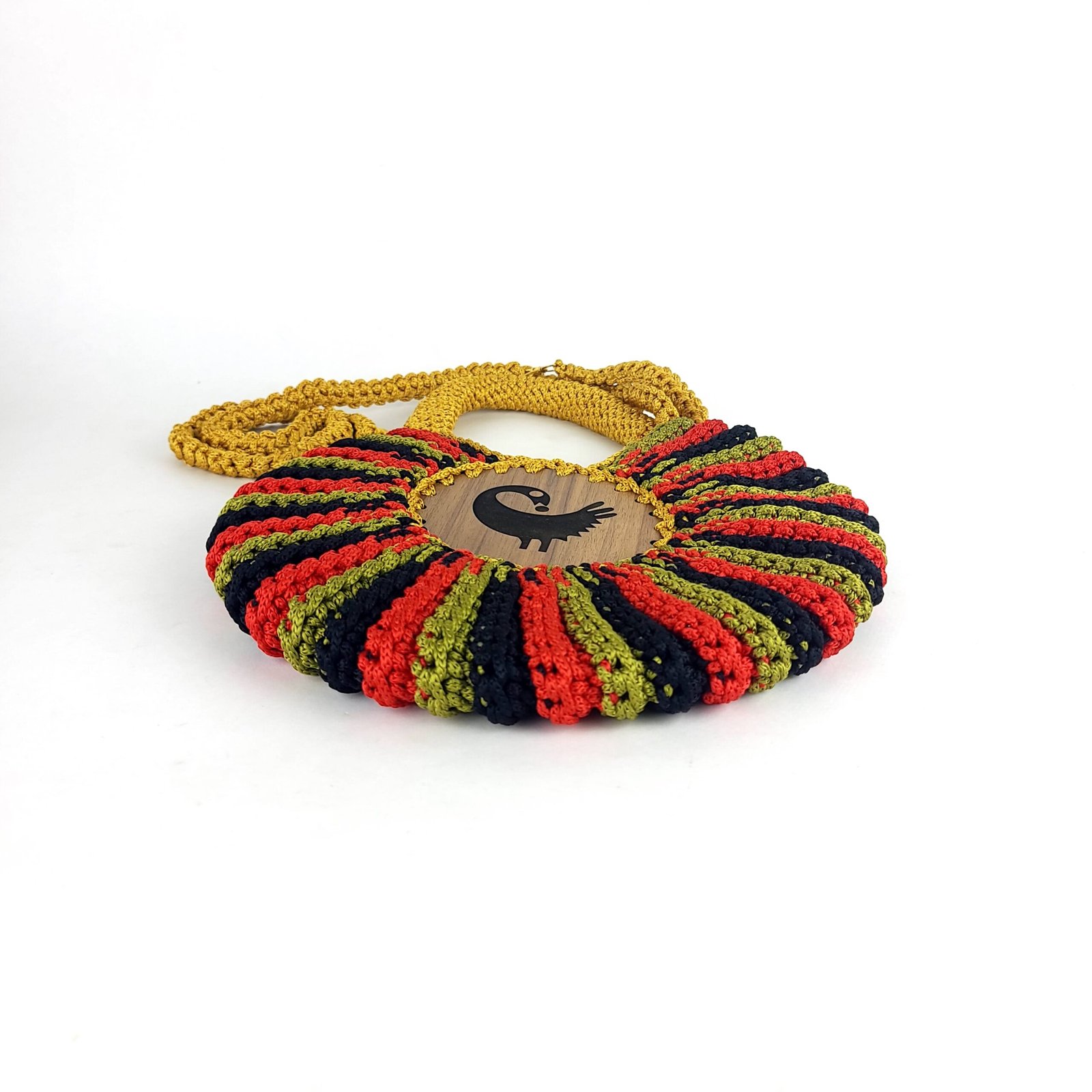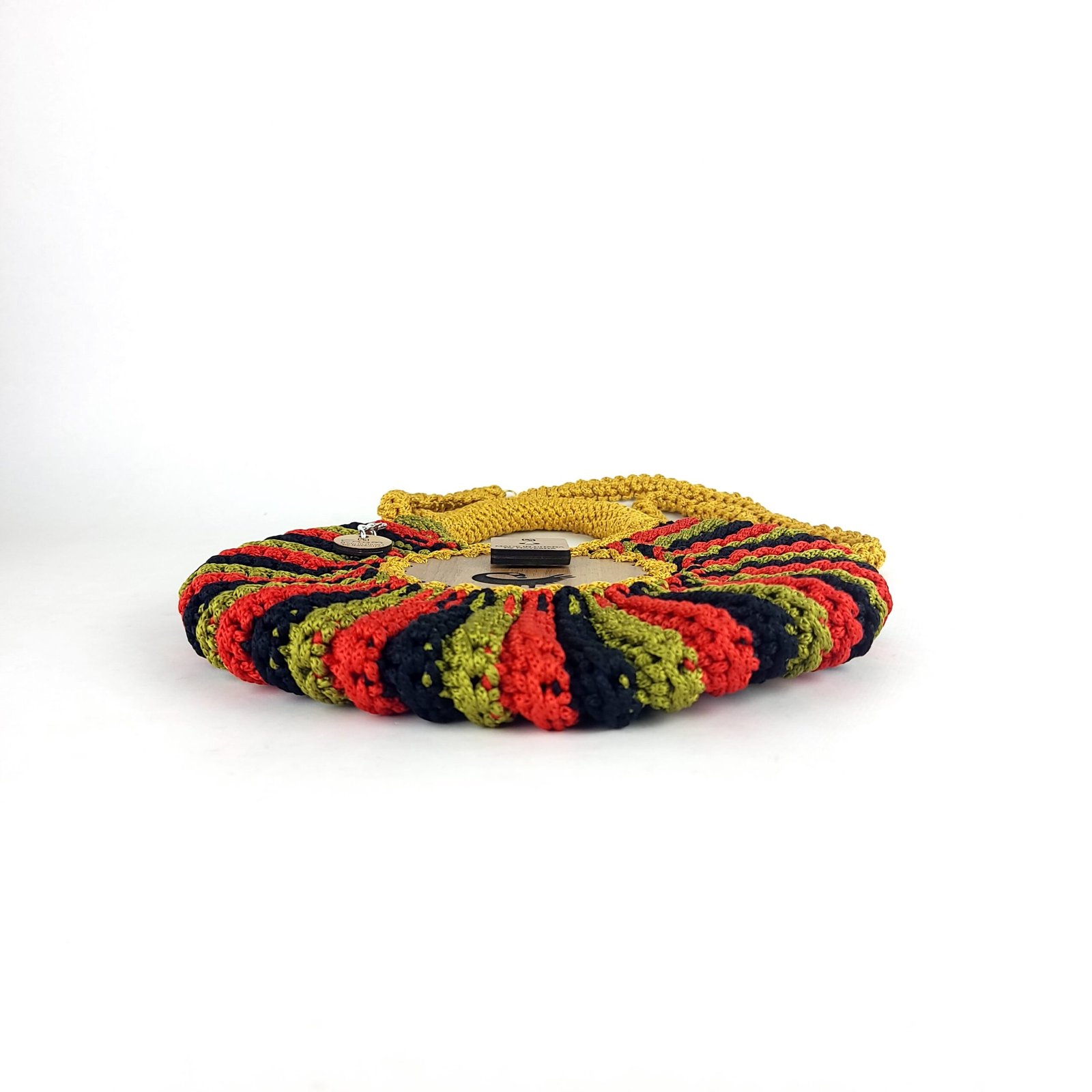 Our Enam Handbag is an ode to a seashell. It’s round and made fully of crochet. It is soft but stands tall like the pride of the sea it is made after and has a long detachable crochet handle. The enam bag is;