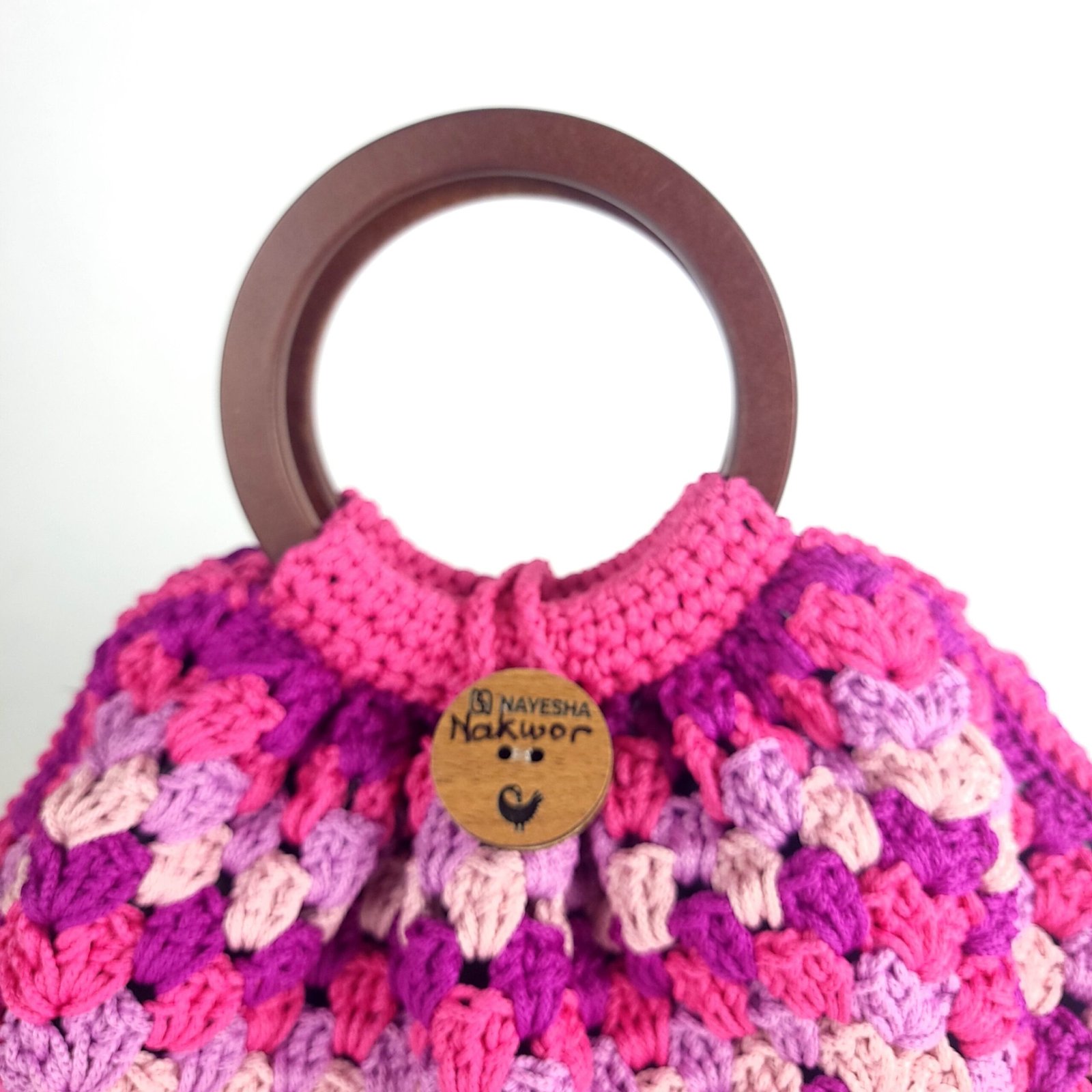 The Nakwor Handbag: An intricate granny square masterpiece with an elegant twist, inner lining, and your choice of beaded, wooden, or bamboo handle. Fun colors for a ‘wow’ factor!