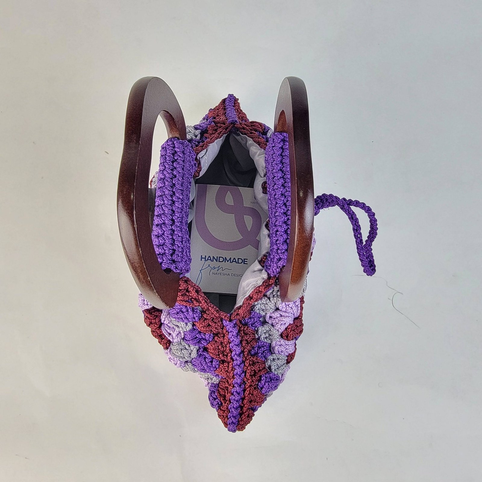 An intricate granny square masterpiece with an elegant twist, inner lining, and your choice of beaded, wooden, or bamboo handle. Fun colors for a ‘wow’ factor!