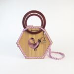 The Nuna Handbag: A unique hexagon design with a detachable strap, drawstring pouch, and your choice of wooden, beaded, or bamboo handle. Handmade style for all your essentials!